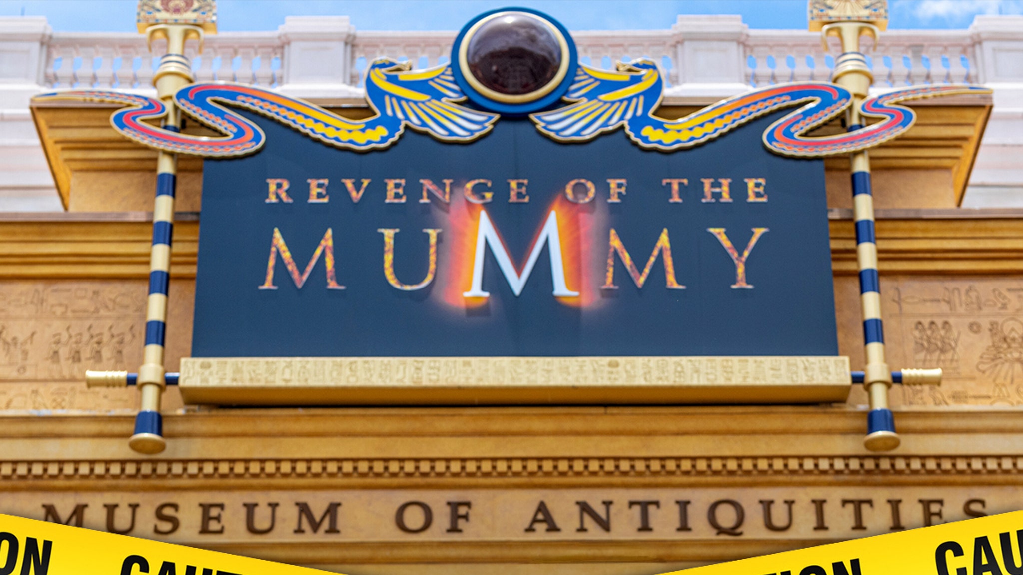 Revenge of the Mummy is an indoor roller coaster with a 39-foot drop … and goes as fast as 40 MPH.