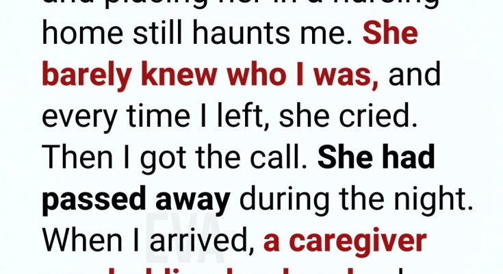 I told myself I had no choice. I was exhausted. I was scared. I was failing her at home. She wandered at night. She forgot to eat. She once left the stove on and nearly burned the house down. Still, signing those papers felt like betrayal. When I kissed her forehead that first night and told her I’d see her soon, she clung to my hand like a child and whispered, “Don’t leave me.”
