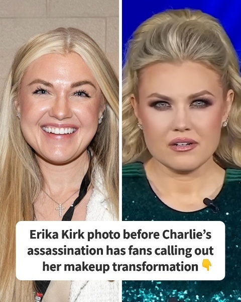 Four months after Charlie’s death, Erika posted a video reflecting on their life together. In one clip, she joined Charlie on stage at a Turning Point event, wearing a makeup style similar to her current public look.