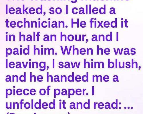 He finished the repair in under 30 minutes, and I paid him. As he was gathering his tools, he paused, looked nervous, and pulled something from his pocket—a small piece of folded paper.