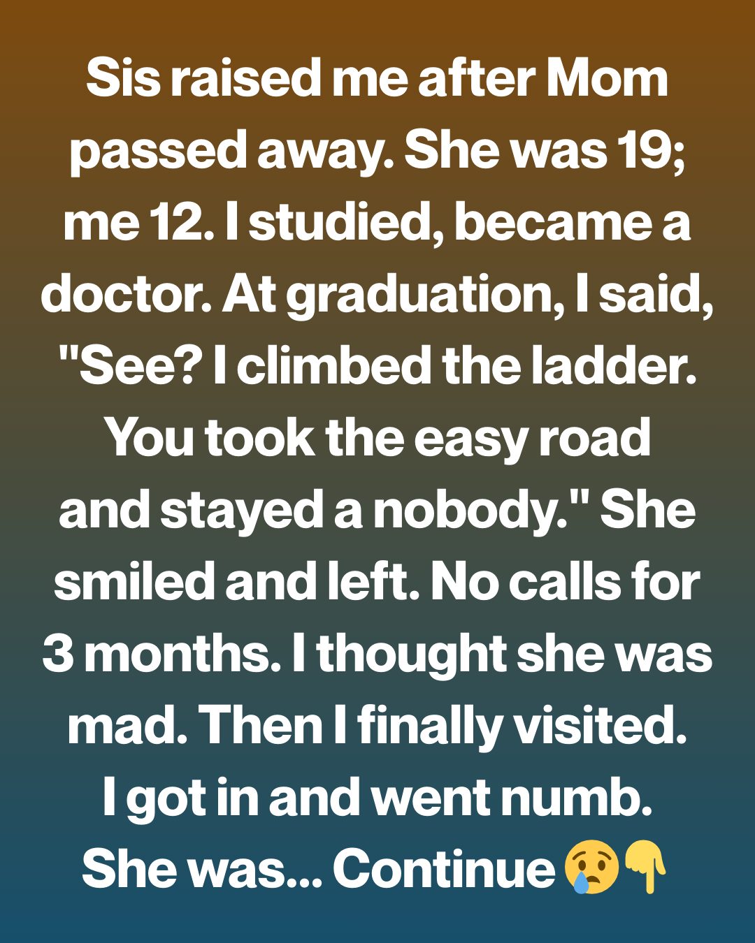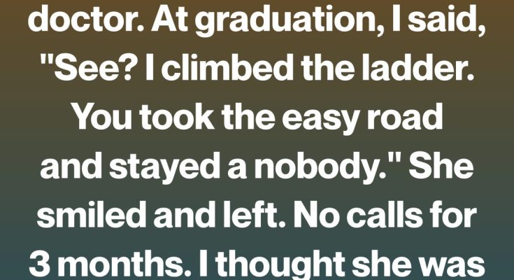 Years passed. I excelled in school, studied relentlessly, and climbed rung by rung toward the life everyone said I was destined for. College. Medical school. Residency. Each milestone felt like proof that her sacrifices had worked.