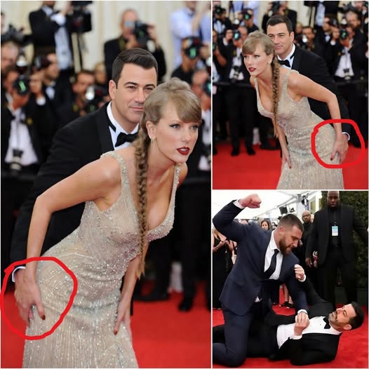 In the ensuing stumble, Jimmy Kimmel—who was nearby filming a segment for his late-night show—reached out to steady himself. However, in the frantic blur of the moment, Kimmel’s hand was “placed in the wrong room,” inadvertently making contact with Taylor Swift as she navigated the crowded space.