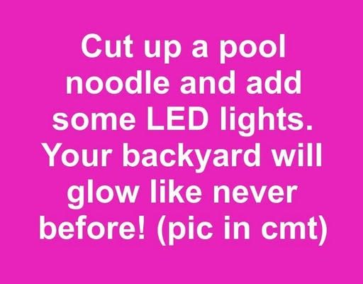 Grab a pool noodle, add some LED lights, and watch your backyard come alive like never before. What starts as a simple craft project can quickly transform dark corners into inviting spaces, bare fences into glowing backdrops, and overlooked pathways into whimsical trails. The soft glow of LED light bouncing off colorful foam creates a warmth that encourages lingering conversations and relaxed summer nights.