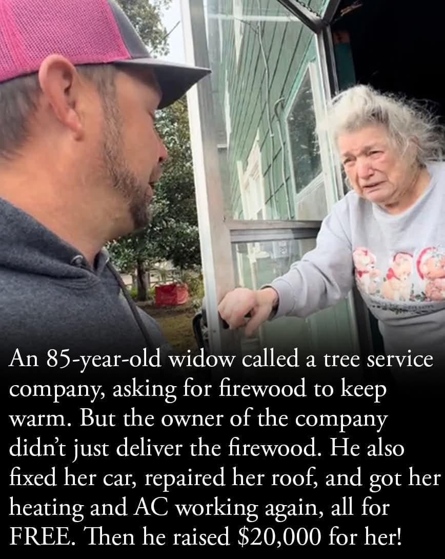 Seeing her living conditions, he realized warmth was only part of the struggle. He and his crew repaired her leaking roof, fixed her failing heat, put new tires on her car, and stocked enough wood to last the season — all at no cost. Then he shared her story, and strangers across the country rallied, raising tens of thousands of dollars. What began as one man’s quiet decision became a powerful reminder that decency still exists, and that compassion, once sparked, can spread farther than anyone expects.