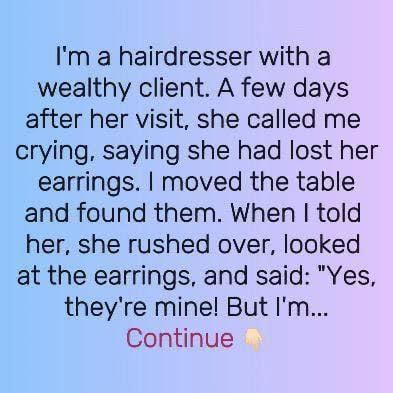 Working with people means witnessing the full spectrum of human behavior, from touching vulnerability to entitled absurdity. In this case, a hairstylist watched a wealthy client crumble over a pair of missing earrings, only to reject them the moment they were found—simply because they had touched the floor. The jewelry hadn’t changed, but in the client’s mind, its value had vanished the instant it no longer felt “pure” enough for her standards.