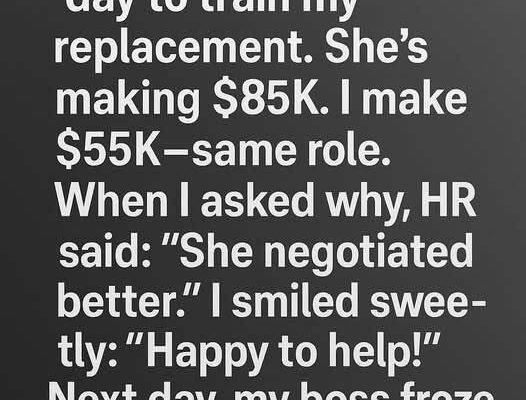 I should have trusted my instincts the moment my boss asked if I could “stay late all week” to train the woman stepping into my role. Something in his tone felt rehearsed, almost hurried, as if he wanted to get the words out before I could question anything. But the real shock came later, when HR casually informed me that my replacement would be earning $85,000.