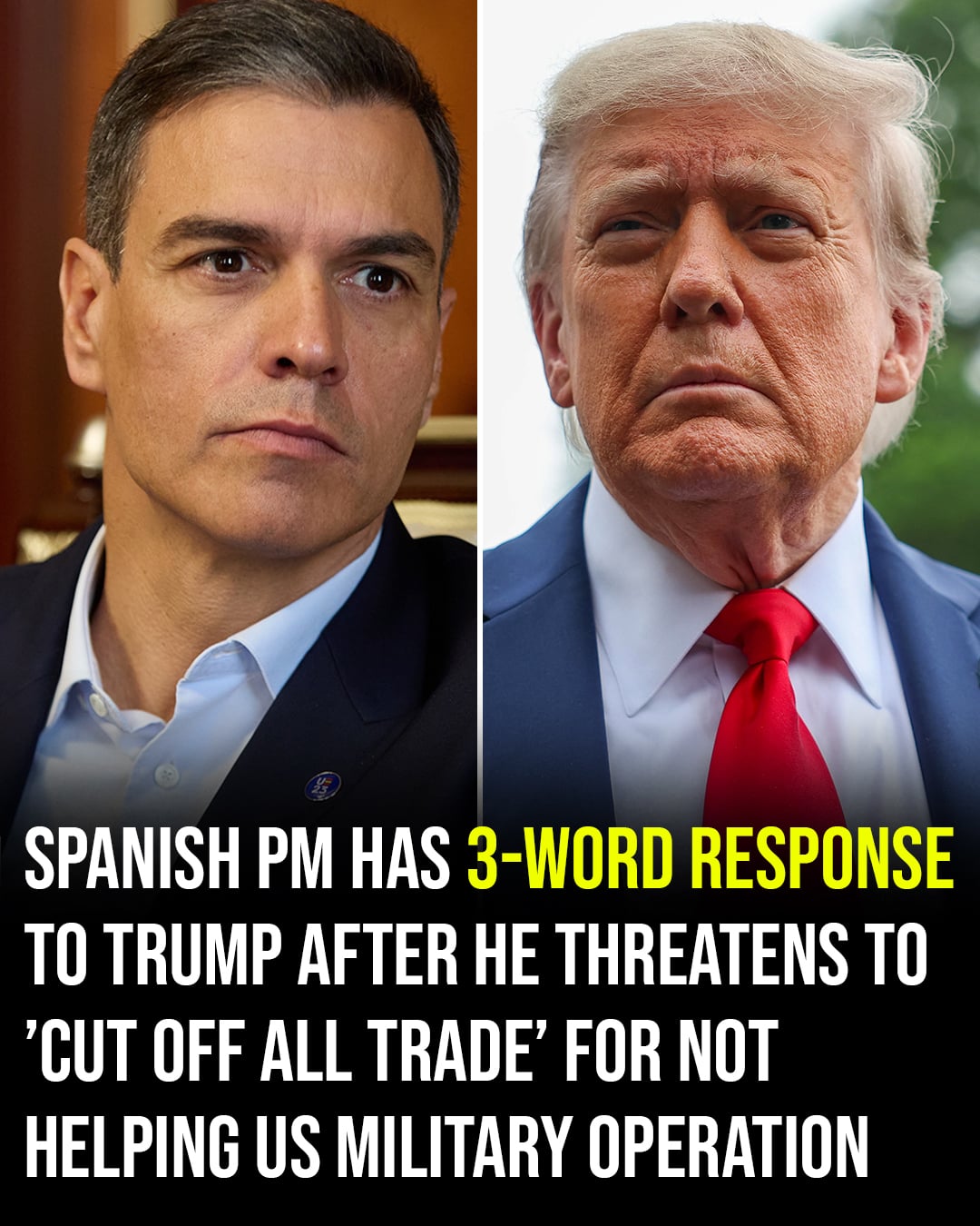Sánchez’s answer was not diplomatic hedging but a moral stand. By declaring “No to war,” he framed Spain’s position as a defense of peace, legality, and national dignity over fear of U.S. reprisals. The clash exposed a deeper rift: a Europe increasingly unwilling to be dragged into wars it does not sanction, and an American president ready to wield economic power as a weapon. Between bombs and boycotts, Spain chose its values — and said so, without flinching.
