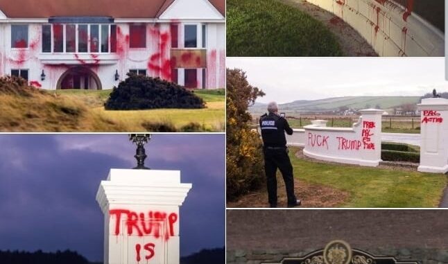 Trump’s Turnberry mansion in Scotland was vandalised overnight in an incident that has sparked widespread attention and a police investigation. Red paint and graffiti were sprayed across the exterior of the Trump Turnberry estate, affecting several buildings as well as prominent entrance features on the grounds. The damage was discovered in the early hours, with images of the defaced property quickly circulating and drawing strong reactions from supporters and critics alike. The luxury resort, closely associated with former U.S. president Donald Trump, is one of the most high-profile properties in Scotland, making the attack particularly striking.