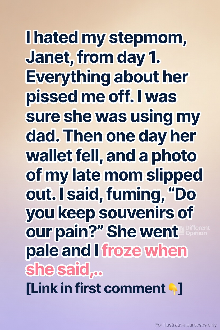 I hated my stepmom, Janet, from the moment she entered our lives, convinced she was only there for my father’s money and that she could never understand or honor my late mother. I shut her out completely, dismissing every attempt she made to connect, until one afternoon at a grocery store changed everything. When her wallet slipped from her purse, a small photo of my mom fell out, and I snapped at her in anger, demanding to know why she had it. What I heard in response shattered my certainty—Janet revealed she had known my mother since high school, admired her deeply, and had even helped care for her during her illness, holding onto the photo not as a claim to her place, but as a quiet promise to honor her memory.