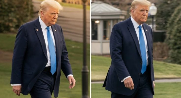 Originally circulated in 2025 by various online accounts, the images depict Trump walking across the White House South Lawn before boarding Marine One, the presidential helicopter used for official transport.