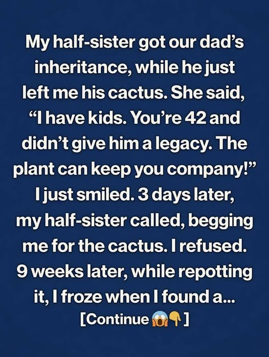 When she finally pressed her fingers into the dry soil and found the hidden envelope, it was as if he had been waiting for her to look closer all along. His note was clumsy, tender, and brutally honest—full of apologies he’d never spoken and pride he’d never voiced. The cactus became less an object and more a living reminder: love doesn’t always arrive dressed as an inheritance. Sometimes it sits in the corner of a windowsill, surviving, until you’re finally ready to see it.