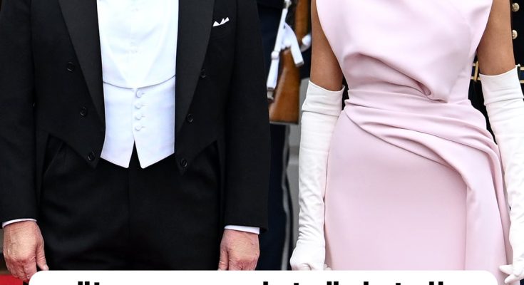 Under the glittering chandeliers and rigid expectations of a royal state dinner, Melania Trump chose to stand out rather than blend in. Her sculpted, strapless pink Dior gown defied the traditional white, modest silhouettes usually seen at such events, especially beside King Charles III and Queen Camilla. To critics, the bare shoulders, towering heels, and eye-watering price tag felt like a challenge to royal etiquette. To admirers, it was proof that she remains one of the most daring and controlled dressers in modern political life, fully aware of the message every seam sends.