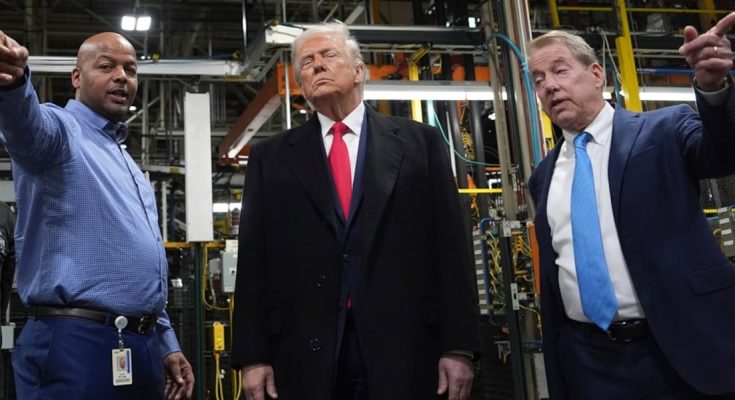 On Tuesday, Trump was touring the Ford F-150 plant at the Detroit Economic Club before giving a speech about the economy.